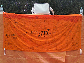 地域決勝前,最後の壮行試合は雨の中集まったサポーターの熱意を感じる物でした。今日は殆ど試合を観ずに入り口で寄せ書きダンマクをやっていましたが今までに無く沢山の方々に書いて頂いて,皆さんの意気込みを強く感じました。試合終了後のセレモニーではゴール裏有志が主導して先週観戦に来て頂いた皆さんと作った千羽鶴をキャプテン貞に渡したのですが,その後メインスタンドからも別の千羽鶴が送られました。