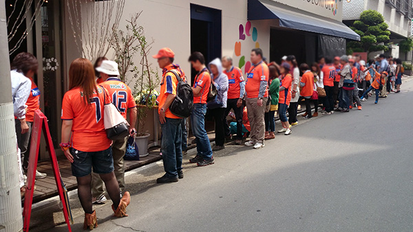 有料だし鳥取戦の時は閑散としてたから開場時刻に合わせて行けば余裕だろ…と思っていたらカラフル前には開場を待つ長蛇の列が!むむ…次はもっと早く来よう。