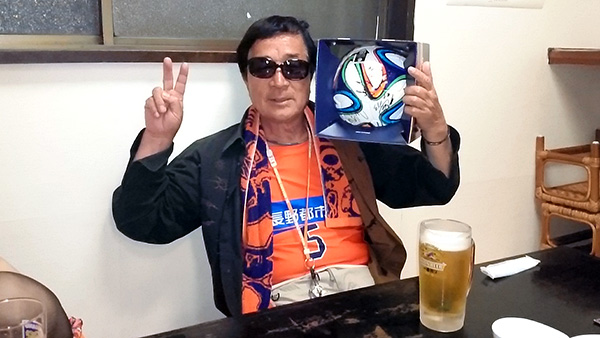 抽選会の目玉商品,サイン入りW杯公式球を見事に当てた『勝利を呼ぶ男』サポーターMさんもご満悦