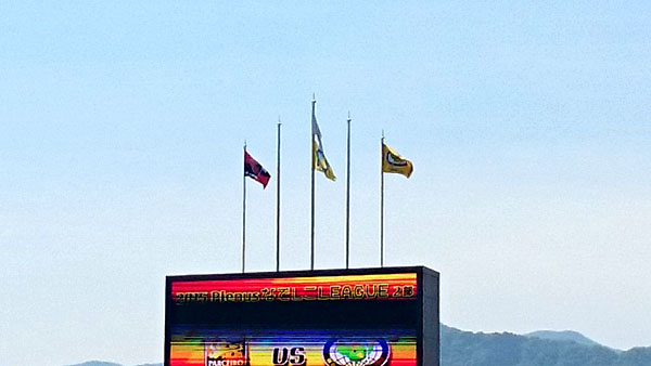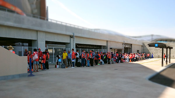 今シーズン初のレディース観戦。南長野に到着すると開場待ちのこの行列,僅か数年前には200人足らずしか観客が居なかった事を思うと感慨深い物があります。