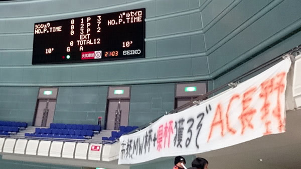 今日は対戦相手の信州大学にも横断幕と声出し応援が!いい感じです