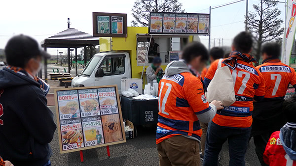 昼食はネットで出店が話題になっていたワンツードン。相模原オススメのスタ飯らしく長蛇の列でした。
