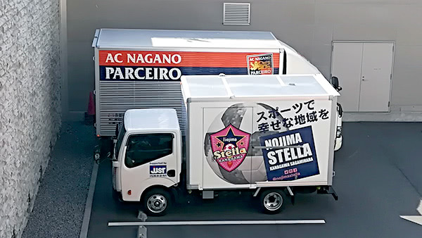 早めに会場入りしたので散策しているとパルセイロとノジマのトラックが並んでいました。