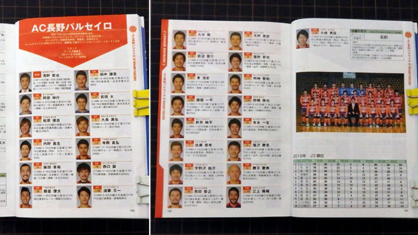 パルセイロは3ページ。全選手の顔写真とプロフィールのみで寸評は無し。J1/J2は選手寸評あり。唐突に2015年のJ3順位表が載っていますがこれは余白に過去の順位表を入れ込む構成になっている為。今年はたまたまパルセイロのところにちょうど良い余白が来たので入れただけだと思われます。