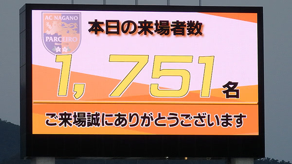 入場者数は今シーズン,というか1部昇格以降最少の1751人。こちらも厳しい…。