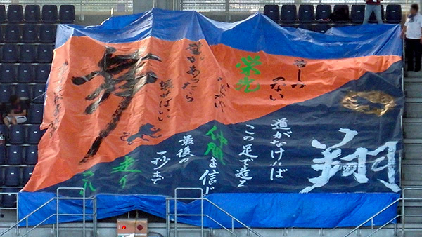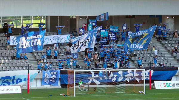遠路ご来場頂いた秋田サポーターの皆さん。ユニークな横断幕応援も健在。