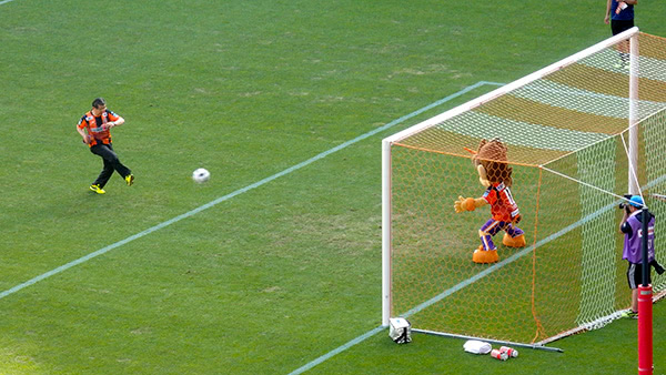 そして試合に先立つ始球式ではお馴染み加藤市長vsライオーによるPK対決。今シーズンここまで1勝1敗で迎えた3回目の対戦は加藤市長の勝利でした。