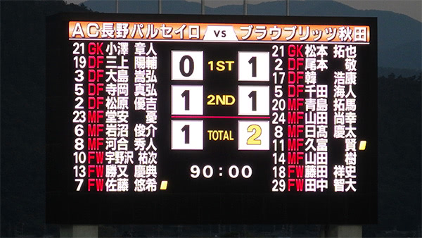AC長野パルセイロ 1-2 ブラウブリッツ秋田