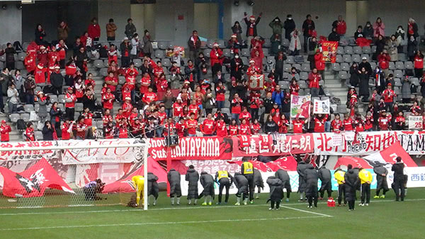 熊本の選手も遠路駆け付けたサポーターに挨拶
