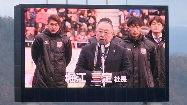 そしてシーズン終了セレモニー。パルセイロ歴代最長の11シーズン在籍,今年限りでの退団が発表された大島選手は時折声を詰まらせる場面も。