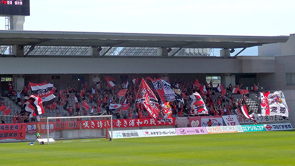 対戦相手は首位を走る三菱重工浦和レッズレディース,今日の試合に勝てば優勝が決まるということもあってサポーターさんも気合の入り方が違います。試合中の応援も圧倒的な迫力でした。