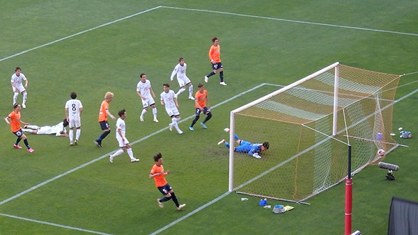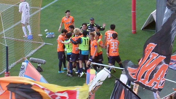 試合はまたしても前半に失点。なんかいつもこのパターンですね。その後更にPKを与えてしまったもののキムミノ選手がビッグセーブで追加点は許さず,後半に入ると逆にPKを得ますが今度は相手GKに阻まれ同点ならず。流石に今日はダメな日かと思っていたところ83分に忽那選手のFKから黒石選手が公式戦3試合連続ゴールで同点,更に終了間際の88分には右サイドからイスンウォン選手が突破して最後は加藤選手が決めて逆転。黒石選手のお洒落ヒールパスが出るなど非常に綺麗な流れからのゴールでした。そのまま逃げ切って3試合連続の逆転勝利となりました。