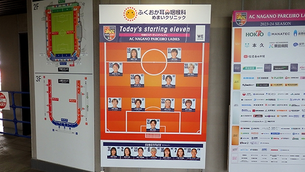トップ同様コンコースにメンバー表が貼られていましたが,大変申し訳ないことにレディースの方はここ数年観戦どころかメンバーの把握すら怪しい状態だったのであまりピンと来ず。とりあえずコロナ禍以前からの推し選手がベンチ入りしていることは確認。