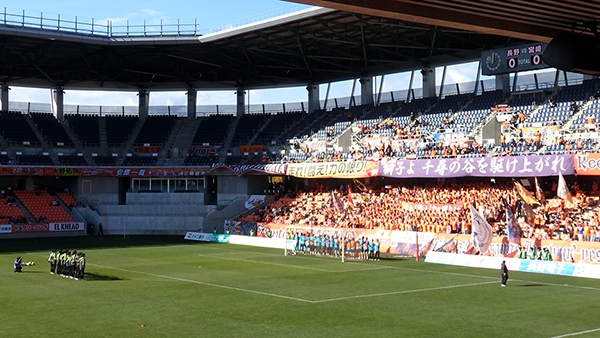 残留争いもいよいよ佳境に入り勝てば残留決定、引き分け以下でも他会場の結果次第で残留決定という状況でプレーオフ圏内の宮崎と対戦です。