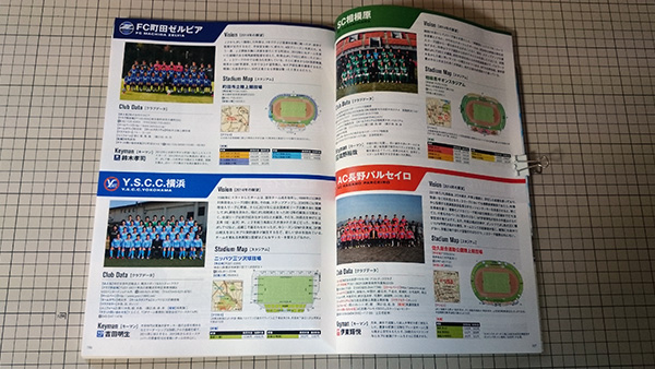 選手名鑑ではありませんがJリーグお墨付きらしい(?)ぴあのJリーグ観戦ガイド。A4判カラー。J1/J2については各クラブ4ページに渡ってスタジアムガイドやお勧めグルメ・観光スポットを紹介。J3は各クラブ1/2ページで簡単なクラブ紹介とスタジアムガイドのみ。