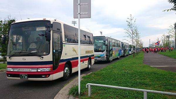 長野からはツアーバスが合計5台。その他自走組や関東在住サポも続々と集まりました。