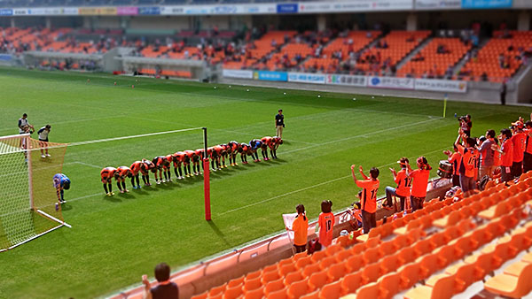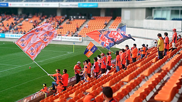 土曜の午前開催という事もあってかサポーターはやや少なめ。それでも元気いっぱい応援します。