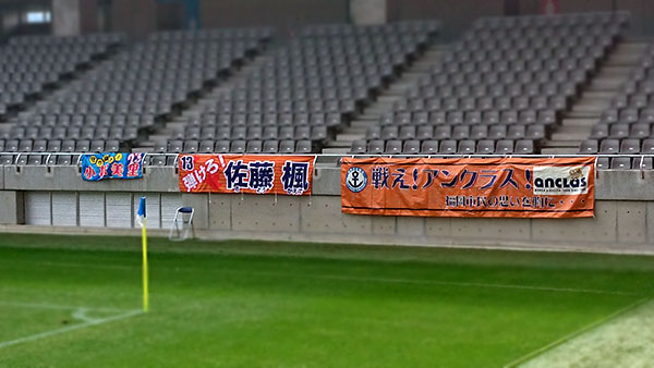 アンクラス側ゴール裏にはチームの横断幕と元パルセイロ小松美里選手・佐藤楓選手の横断幕(共にパルセイロ時代の物なのでパルサポが張ったのかも)。鳴り物・声出し応援は無しというかサポーターさんの姿が見られず。