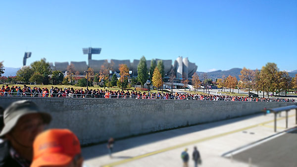 優勝を見届けようと駆け付けたサポーターが開場前から長蛇の列,待機列が入場ゲートからビクトリーロードまで伸び麓で折り返すほど。