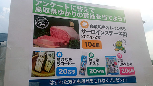今日は鳥取PRブースが出店。アンケートに答えると特産品が当たるガラポンが出来ると言う事で早速チャレンジ。